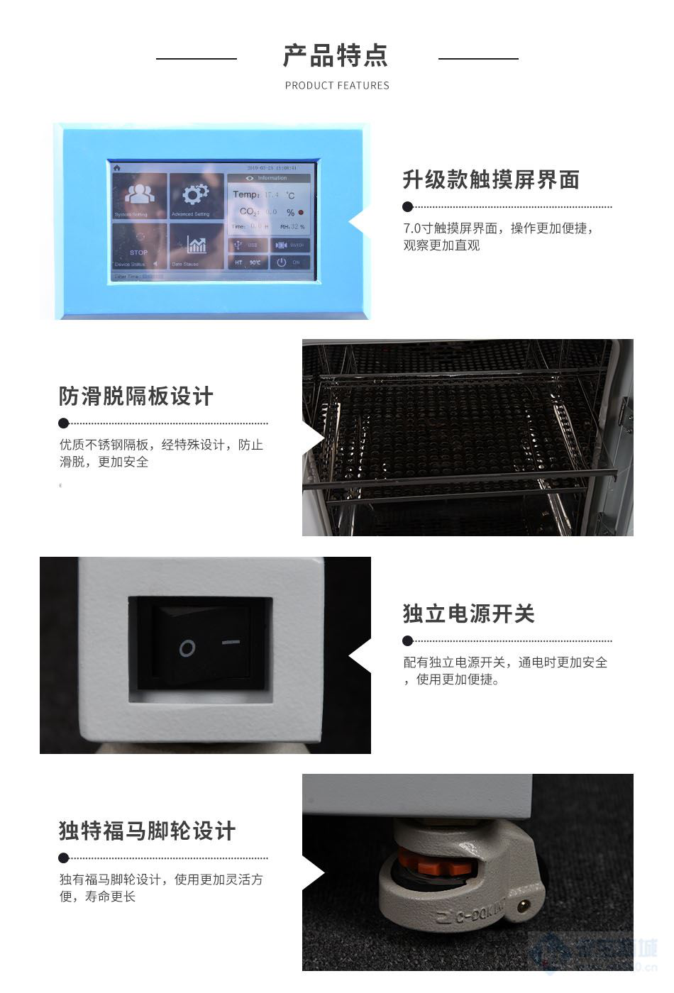 博科气套式触摸屏二氧化碳培养箱QP-80h,其主要产品性能及参数: