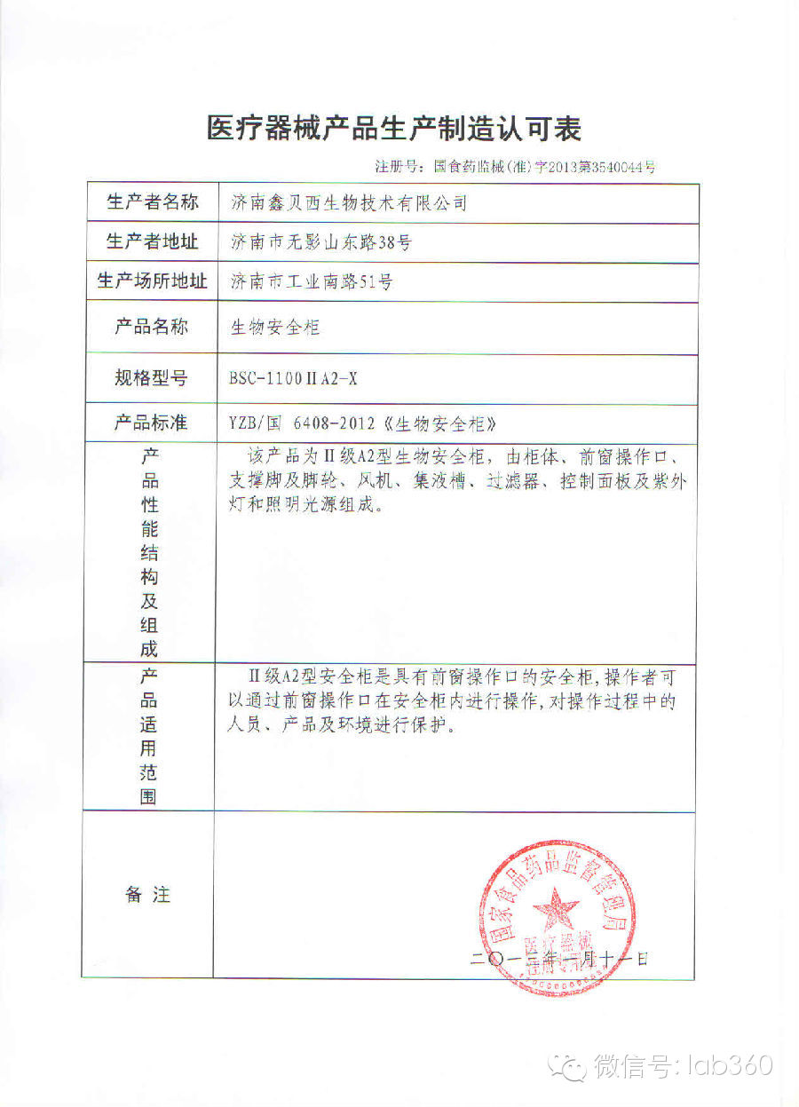 鑫贝西单人二级A2生物安全柜BSC-1100IIA2-X国内首家获医疗器械注册证